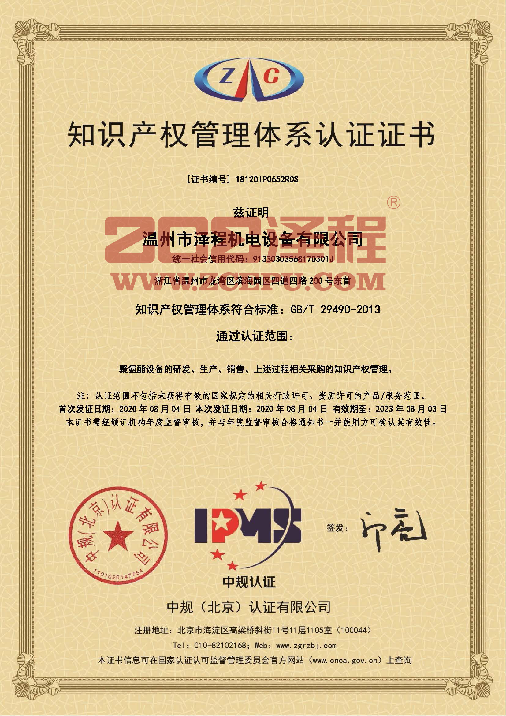 本次認證通過對公司多個部門的現(xiàn)場審核,查閱了數百頁的文檔和數字資料,對多名職工進行了知識產權問答,并對生產現(xiàn)場進行了走訪調研,經過為期一天半的認證審核,中規(guī)(北京)認證有限公司兩位專家一致通過認證,并推薦頒發(fā)了知識產權管理體系認證證書。